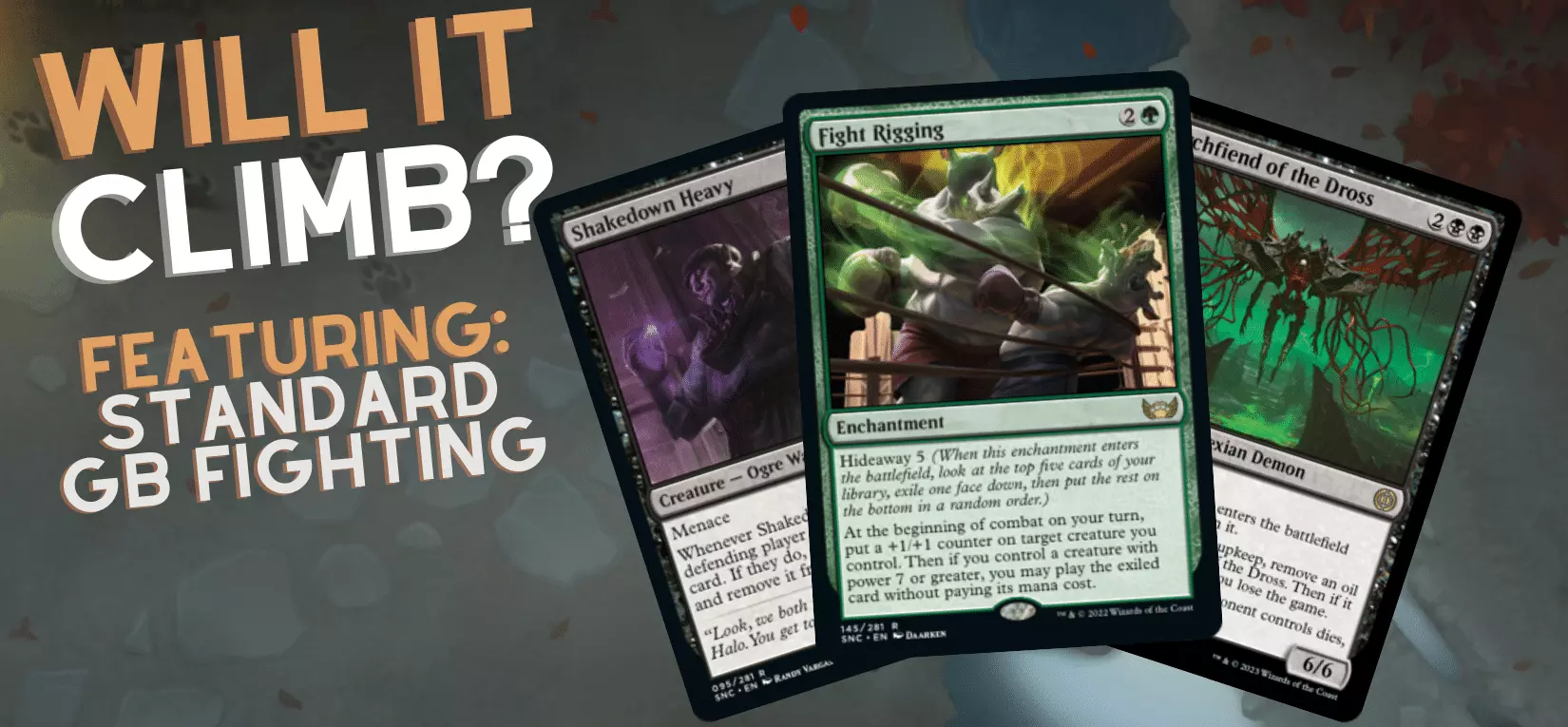 The goal of this list is to cheat out expensive cards with a combination of Fight Rigging and high-power cards like Shakedown Heavy and Archfiend of the Dross. On turn four, if the pieces all fall in place, you could have a 7/5 Shakedown Heavy and a Titan of Industry, or an Archfiend of the Dross and a Vraska, Betrayal’s Sting staring down your opponent.
